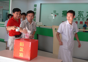 2008年5月13日,在得知汶川地震后,院党组织亲自带头为灾区同胞捐款,福州东方男子医院在医院一楼大厅举行“为灾区人民,再献一份爱心”救灾捐赈活动,医院全体员工积极响应贡献自己一份爱心给灾区人民。在15分钟的时间内医院领导及各科室员工共计捐款16340元。并一致同意将所捐款项购买食品和水由相关部门送往灾区。